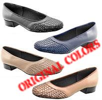 Woven nappa leather V-shape vamp with 1" heel, street sole.