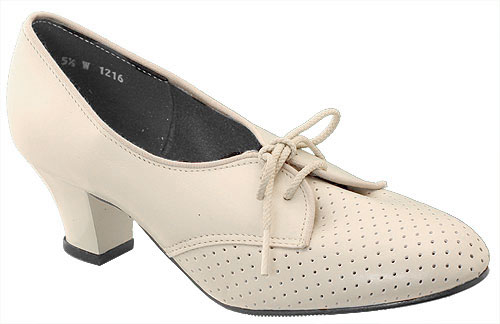 Nappa leather jazz oxford with 1 3/8" covered heel, street sole.