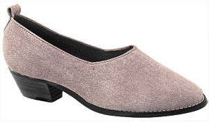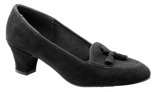 Split suede leather pintuck with tassel on man-made sole with covered heel.