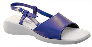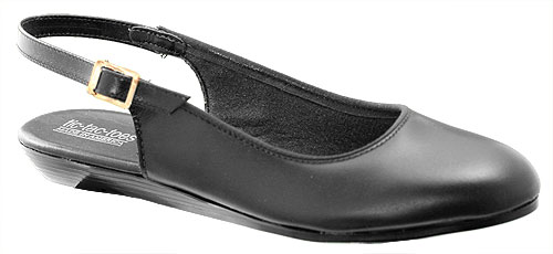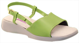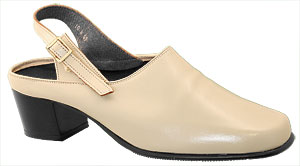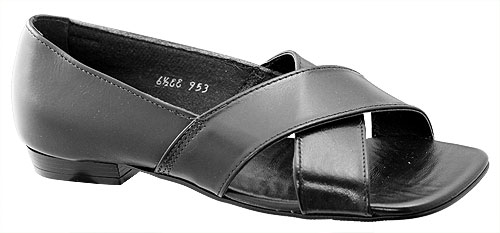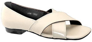 Nappa leather cross band, open toe close back with 1/2" heel, street sole.