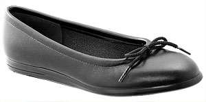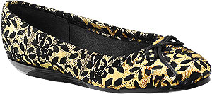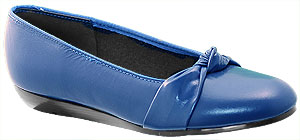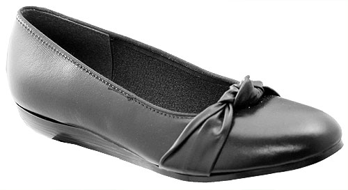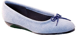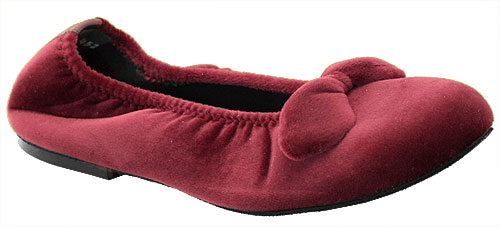 Velour fabric skimmer with bow trim and leather sole, 2/8" heel.