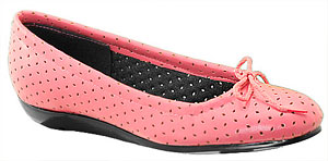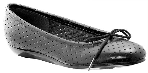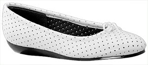 Nappa leather shoes with diamond punch out, 7/8" man-made wedge sole.